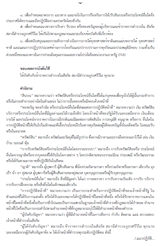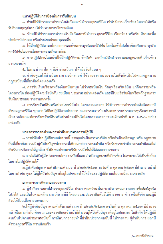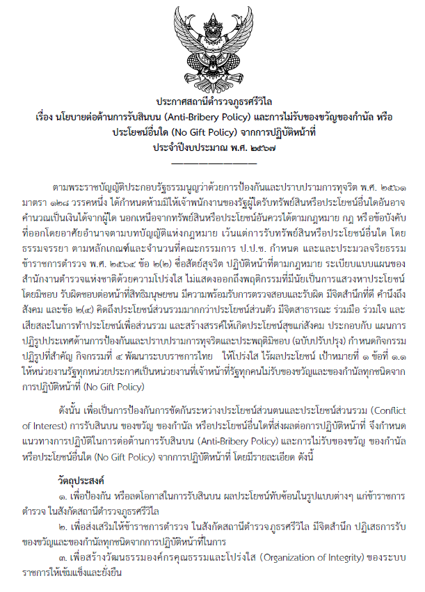 ข่าวกิจกรรมที่ ๑ ในการมีส่วนร่วมของหัวหน้าสถานีตำรวจชี้แจงแจ้งประกาศของสถานีเรื่องการต่อต้านการรับสินบนและไม่รับของขวัญและของกำนัลของหน่วย 19 ธันวาคม 2566 โดย Vichai / การมีส่วนร่วมของหัวหน้าสถานี วันที่ ๑๙ ธันวาคม ๒๕๖๖ เวลา ๐๙.๐๐ น. พ.ต.อ.ญาณะธัช ชัยพชรโชติ ผกก.สภ.ศรีวิไล ประชุมชี้แจงแจ้งประกาศของสถานีเรื่องการต่อต้านการรับสินบนและไม่รับของขวัญและของกำนัลของหน่วยให้ข้าราชการตำรวจในสังกัดถือปฏิบัติ ชี้แจงให้ทุกหน่วยทราบดังนี้ FacebookFacebookXXLINELine