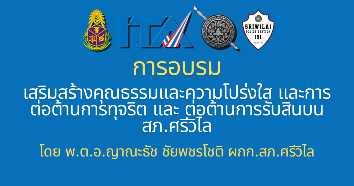 วันที่ ๑๙ ธ.ค.๖๖ เวลา ๑๐.๓๐ น. พ.ต.อ.ญาณะธัช ชัยพชรโชติ ผกก.สภ.ศรีวิไล ได้จัดอบรมข้าราชการตำรวจในสังกัด เรื่องเสริมสร้างคุณธรรมและความโปร่งใส การต่อต้านการทุจริต และ ต่อต้านการรับสินบน