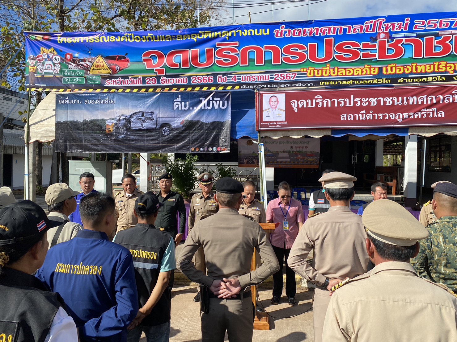 ร่วมพิธีเปิดจุดตรวจ บริการประชาชน จุดหน้าป้อมยาม สภ.ศรีวิไล ถนน 222 บึงกาฬ-พังโคน ต.ศรีวิไล อ.ศรีวิไล เพื่ออำนวยความสะดวกด้านการจราจร ดูแลความปลอดภัยให้กับประชาชน เพื่อป้องกันและลดอุบัติเหตุทางถนนในห้วงเทศกาลปีใหม่ 2567