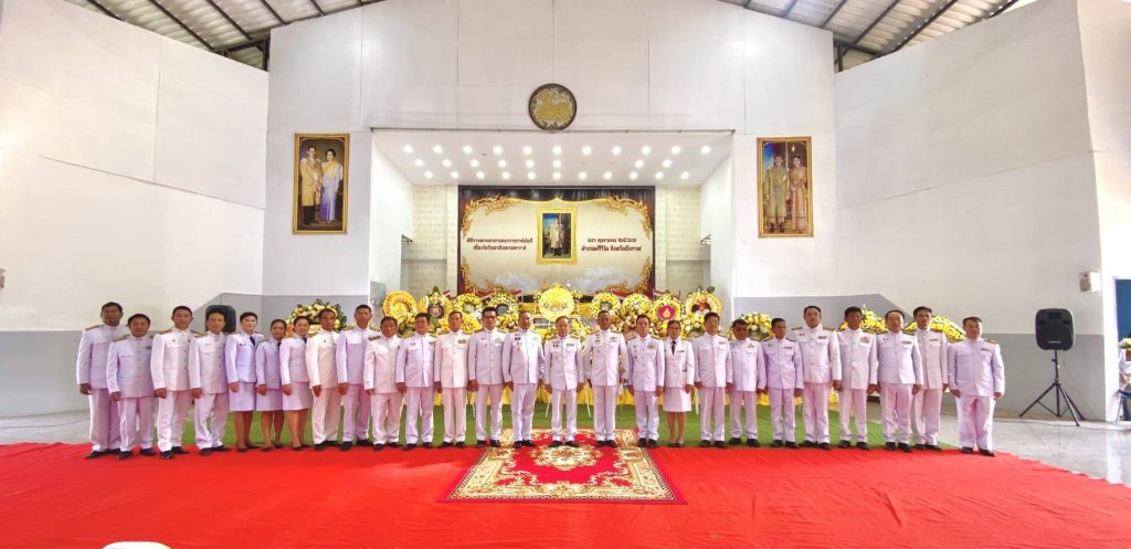 ต่อมาเวลา 09.00 น. นำกำลังพลร่วมพิธีวางพวงมาลาถวายราชสักการะ ณ หอประชุมอำเภอศรีวิไล