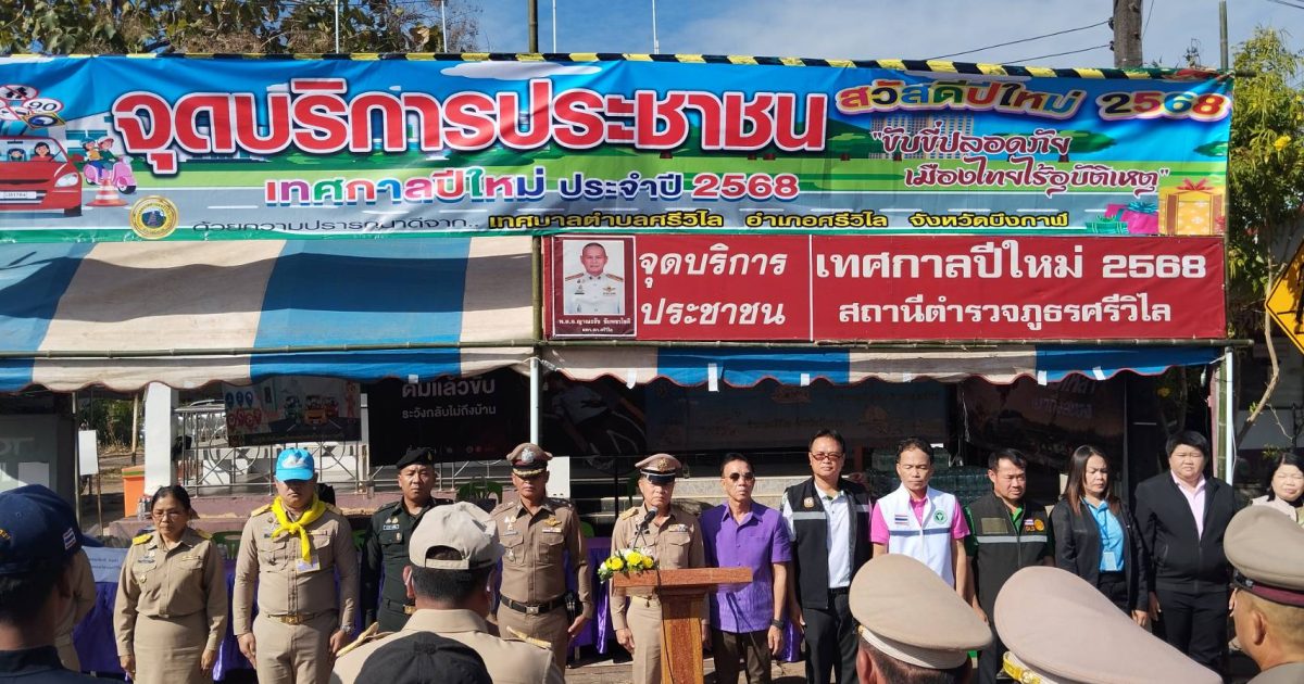 สภ.ศรีวิไล จ.บึงกาฬ วันนี้ (27 ธันวาคม 2567) เวลา 10.00 น. นายภูมิชัย วิเศษสา นายอำเภอศรีวิไล , พ.ต.อ.ญาณะธัช ชัยพชรโชติ ผกก.สภ.ศรีวิไล, นายสมเกียรติ ลามคำ นายกเทศบาลตำบลศรีวิไล , ปกครองอำเภอศรีวิไล, สาธารณสุข,เจ้าหน้าที่โรงพยาบาล,เทศบาล,กำนัน,ผู้ใหญ่บ้าน,อปพร.และประชาชนจิตอาสา ร่วมพิธีเปิดจุดตรวจ บริการประชาชน จุดหน้าป้อมยาม สภ.ศรีวิไล ถนน 222 บึงกาฬ-พังโคน ต.ศรีวิไล อ.ศรีวิไลเพื่ออำนวยความสะดวกด้านการจราจร ดูแลความปลอดภัยให้กับประชาชน เพื่อป้องกันและลดอุบัติเหตุทางถนนในห้วงเทศกาลปีใหม่ 2568