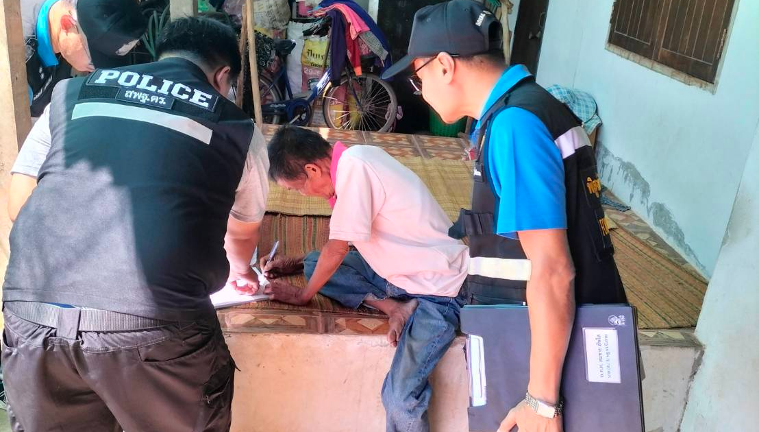 ตำรวจพิสูจน์หลักฐานบึงกาฬ ร่วมกับพนักงานสอบสวน เจ้าของคดีเก็บเนื้อเยื่อกระพุ้งแก้มจากผู้ต้องหา