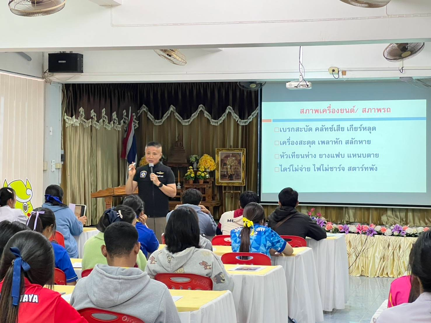 รอง ผกก.(สอบสวน)ฯเป็นวิทยากรให้กับผู้ที่จะเข้าทดสอบใบขับขี่ประเภท ท.2